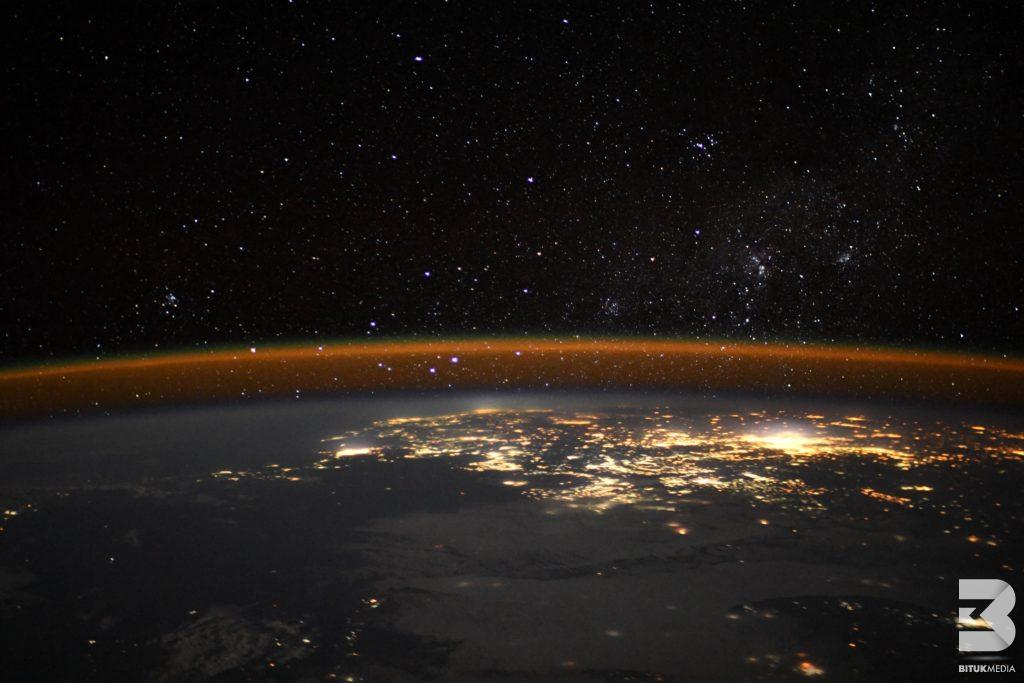“Нічна світлина з (модуля на МКС – ред.) Купола: іноді зіркові вогні «борються» з підсвітленими містами (на Землі – ред.) за те, хто з них найяскравіший та найкрасивіший”, – написав Песке.
