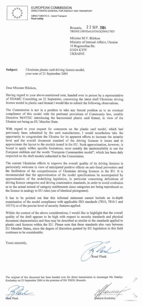 Европейская комиссия подтвердила высокое качество украинских удостоверений водителя в виде пластиковой карты, которые производила наша компания. По ее заключению, документ соответствует стандартам, выдвигаемым к пластиковым удостоверениям в Евросоюзе.