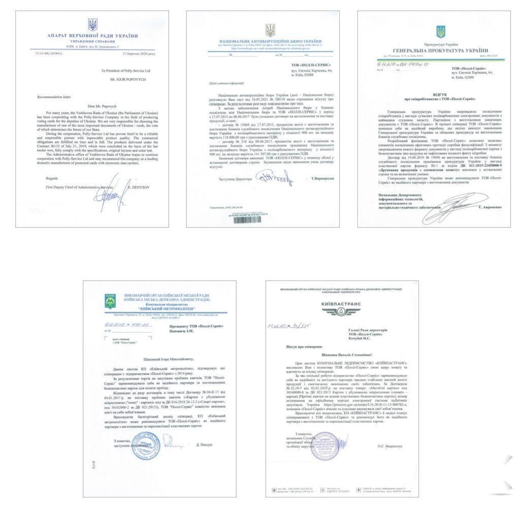 Игорь Попович: В этом году исполнилось уже 17 лет, как «Полли-Сервис» стабильно и системно работает на рынке Украины. Мы поставляем высокозащищенные документы с собственными решениями таким уважаемым государственным ведомствам и учреждениям, как Национальное антикоррупционное бюро Украины, Государственное бюро расследований, Верховная Рада Украины, Государственная налоговая служба Украины, Киевская городская государственная администрация, Департамент обеспечения Государственной службы специальной связи и защиты информации Украины, Офис Генерального прокурора и др.