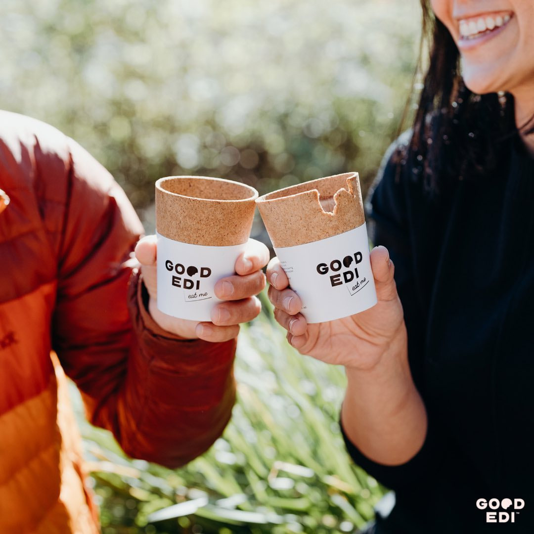 Австралійські стартапери Анійо Рахебі й Кетрін Гатчинс створили їстівні стаканчики для кави на основі житнього борошна. Аби знайти найбільш підходящий, вони провели сотні годин на кухні і протестували 250 рецептів тіста.