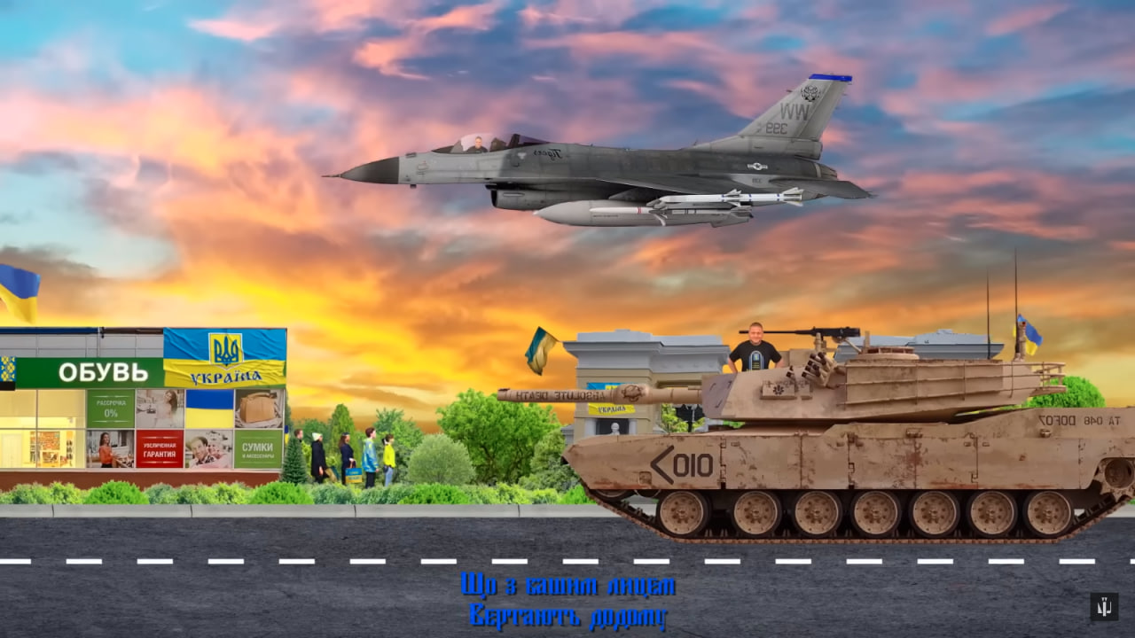 Головною дійовою особою кліпу є Валерій Залужний. Завдяки комп’ютерним технологіям, його персонаж не тільки співає, а ще й пританцьовує під музику, поки їде на танкові “Абрамс” та летить на F-16.