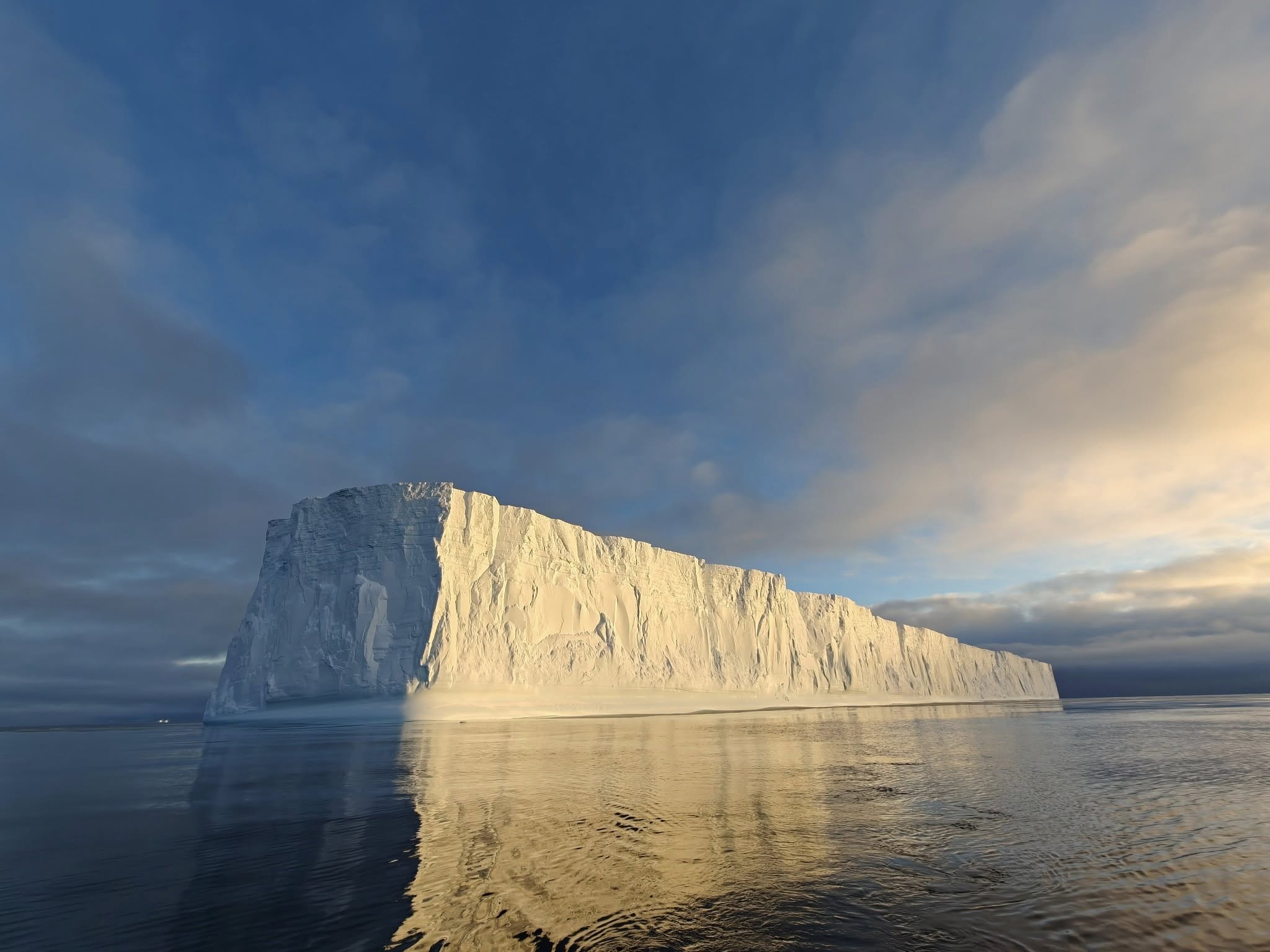 Айсберг має характерну столову форму — з вертикальними краями та пласкою верхівкою. Такі гіганти зазвичай відколюються від шельфових льодовиків і можуть дрейфувати на тисячі кілометрів.