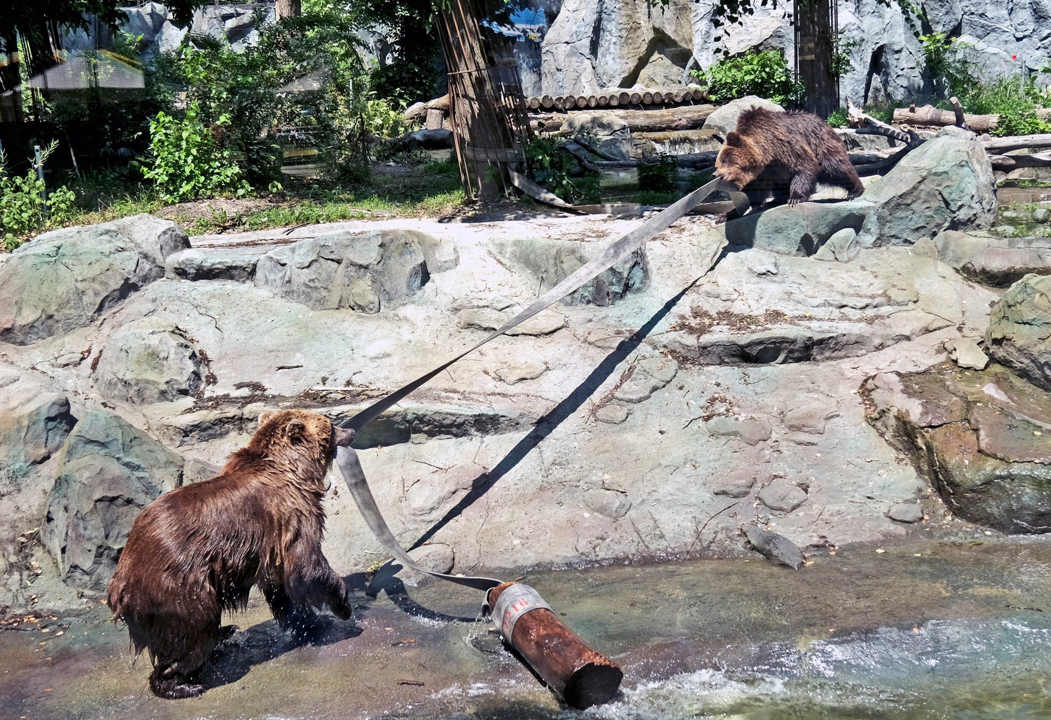 “Купання — це природна й необхідна активність бурих ведмедів у теплу пору року. Щоб підтримати таку поведінку, ми додали новий водограй, оновили басейн і модернізували систему постачання води, завдяки чому потік води в штучній гірській річці збільшився на 30%. А ще — оновили зони відпочинку та потішили клишоногих новими ігровими конструкціями, дерев’яними колодами та джутовими канатами”, – зазначає пресслужба зоопарку.