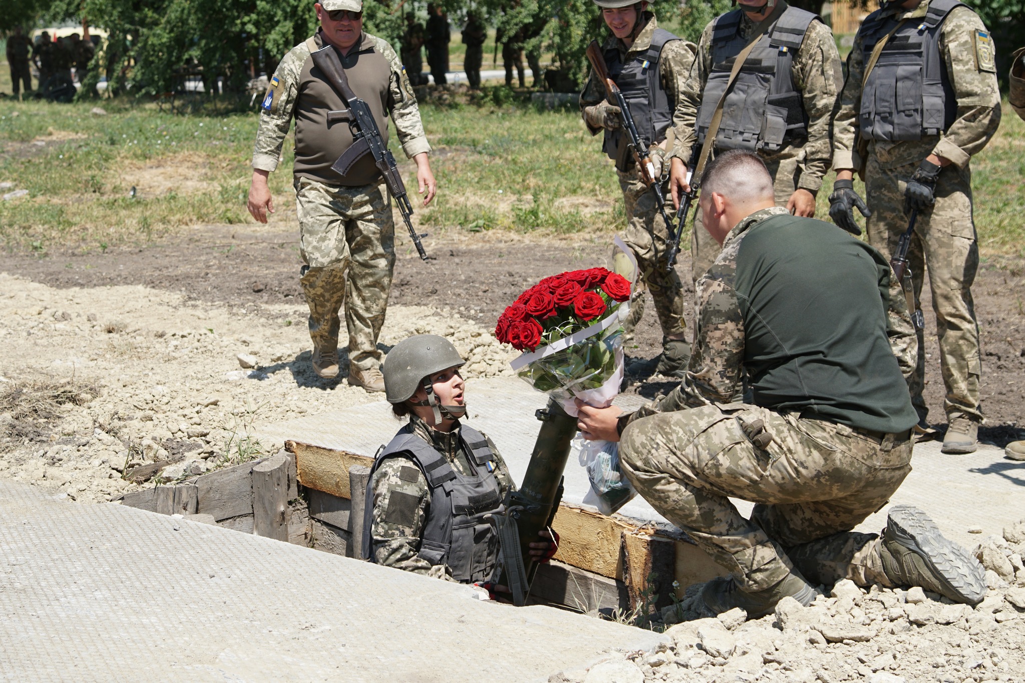 Просто на полігоні сталося те, що навіть війна не здатна зупинити — освідчення в коханні. Курсант із Донеччини став на одне коліно перед своєю бойовою подругою і запропонував їй пройти разом не лише смугу перешкод, а й усе життя.