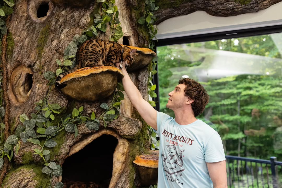 У будинку Пауерса є окрема “котяча” зона з відкритим майданчиком-катіо, тематичним пінбол-автоматом та безліччю ігрових конструкцій. Нове ж дерево, вагою понад 950 кг, виконане з бетону і виглядає як справжнє: з гілками, грибами-сходами, затишними нішами та “воронячим гніздом” на верхівці.
