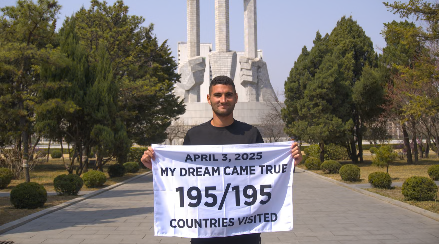 25-річний Кемерон Мофід, який страждає від ОКР, став наймолодшим чоловіком, який відвідав усі країни світу – 195. Американець вирішив податися у мандри, щоб відволіктися від нав’язливих думок під час пандемії. П’ять років потому, у квітні 2025-го, він завершив свою подорож у Пхеньяні.