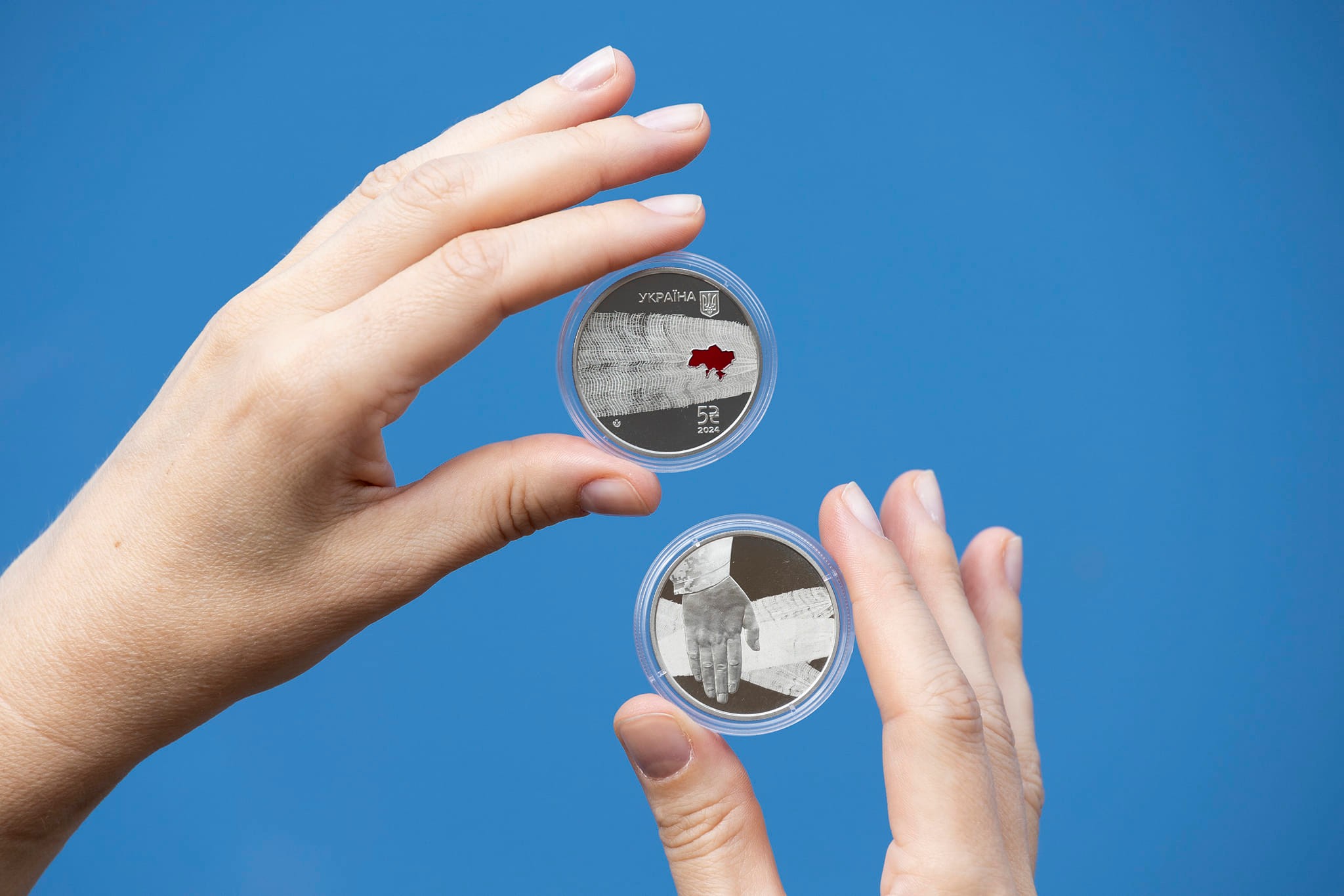 Монета була введена в обіг 26 липня 2024 року та присвячена самовідданій праці українських медиків у тилу й на фронті. Вона має номінал 5 гривень, виготовлена з нейзильберу, тираж – до 50 тис. штук.
