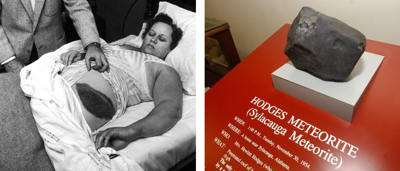 Люди бояться авіакатастроф, блискавок і ядерних ракет, але шанс стати мішенню для метеорита здається фантастично малим. І все ж це сталося. За всю історію спостережень NASA задокументувало лише один випадок, коли людина пережила падіння на неї космічного каменя.