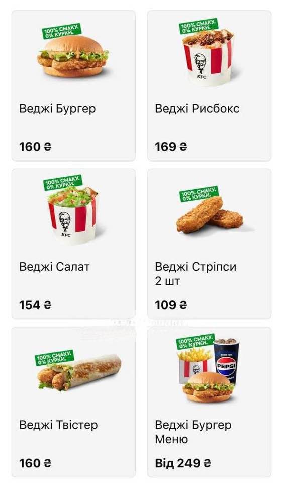 Стріпси Веджі, Веджі бургер, Веджі твістер, салат із веджі-стріпсами та рисбокс із веджі-стріпсами – у столичному ТРЦ Blockbuster Mall відкрився перший в Україні заклад KFC, де меню повністю складається з рослинних альтернатив до м’яса.