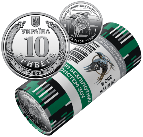 Частина тиражу вийде у вигляді спеціальних сувенірних роликів (по 25 монет). На обгортці – емблема Сил безпілотних систем на тлі стилізованих повітряних потоків. Загальний тираж роликів – 20 тис. штук. Придбати їх можна з 2 жовтня 2025 року в інтернет-магазині нумізматичної продукції НБУ (12 тис. роликів) та у банках-дистриб’юторах.
