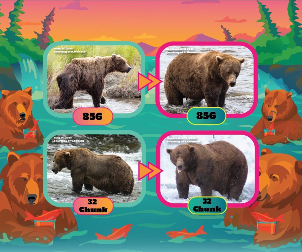 Цьогорічна інтрига була особливою: Chunk вийшов на річку Брукс після бійки з іншим ведмедем, в якій отримав серйозну травму — зламану щелепу. У “Катмай” ведмеді не отримують ветеринарної допомоги, тож експерти сумнівалися, чи зможе він впоратися. Але Chunk адаптувався: навчився ловити й їсти лосося навіть із травмою. Саме його наполегливість і здобута маса тіла привели ведмедя до перемоги.