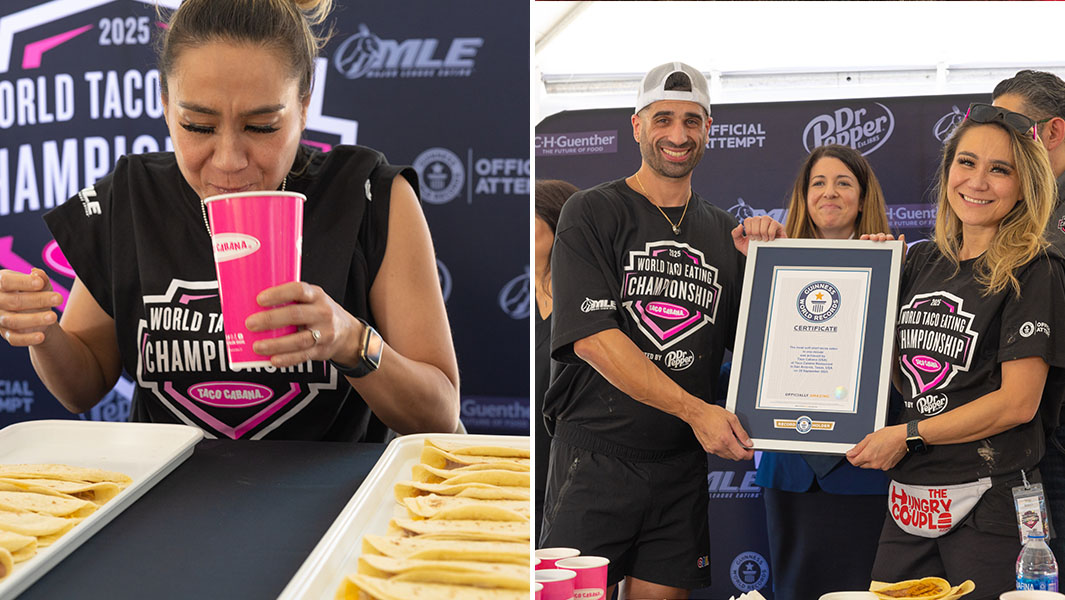 Чи можливо з’їсти дев’ять тако за хвилину і при цьому ще посміхатися на камери? Виявляється — так! У Техасі (CIF) під час святкування дня народження мережі Taco Cabana двоє учасників побили світовий рекорд зі швидкісного поїдання.