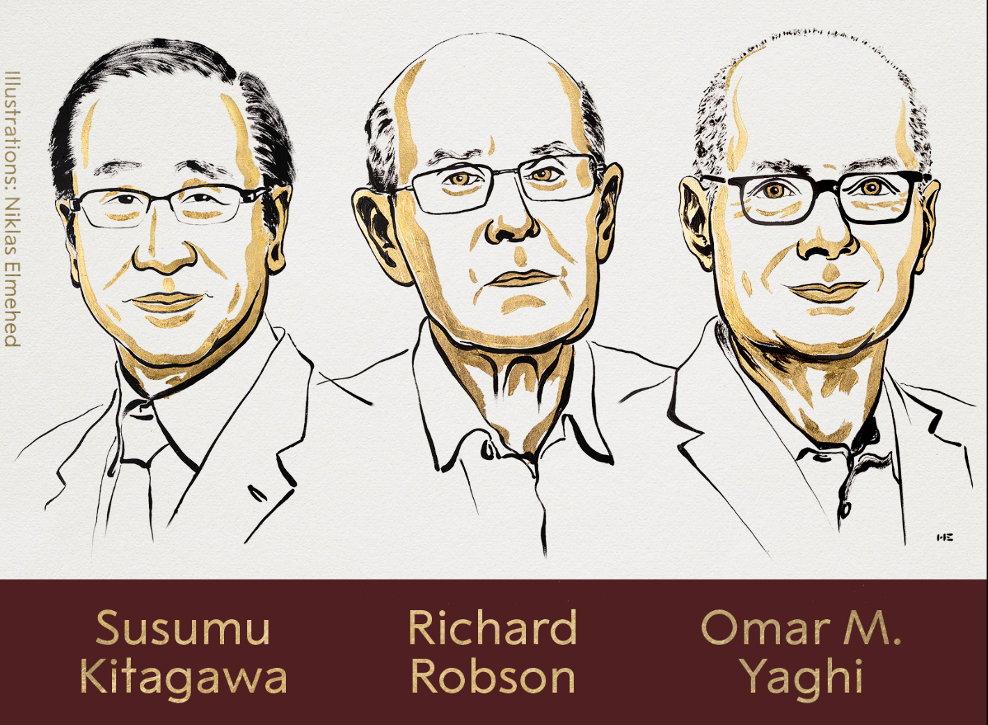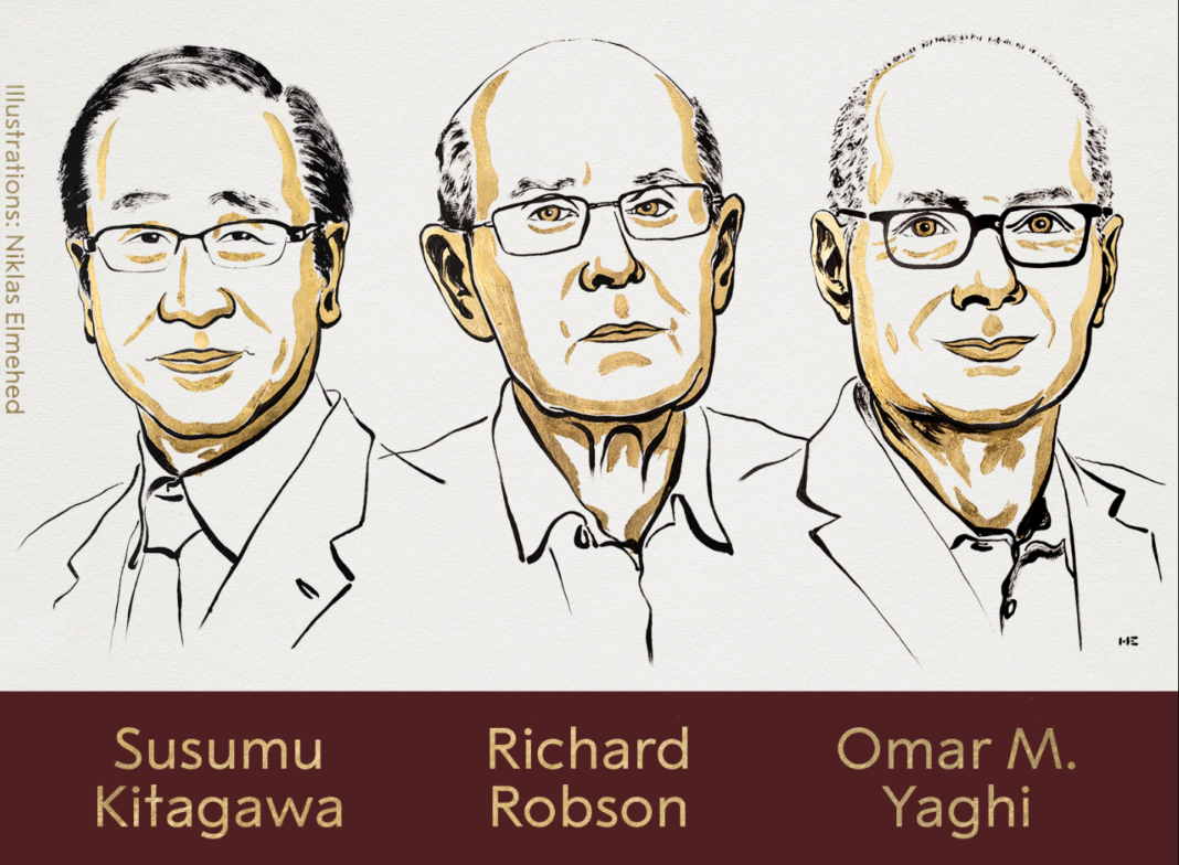 Нобелівку з хімії у 2025 році отримають Сусум Кітагава, Річард Робсон та Омар М. Ягі. Трьох вчених відзначили “за розробку металорганічних структур” (MOF).