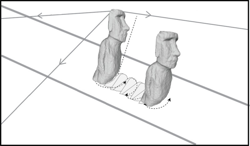 Вчені створили 3D-модель моаї, яка враховувала конструктивні особливості — широкі основи й легкий нахил уперед. Моделювання показало, що найефективніше пересувати статуї саме у вертикальному положенні, зигзагоподібно розгойдуючи їх.