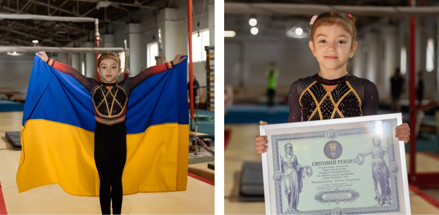 Шестирічна гімнастка з Львівщини Регіна Абрамова увійшла до Книги рекордів Гіннеса, виконавши 223 підйоми з переворотом на перекладині.