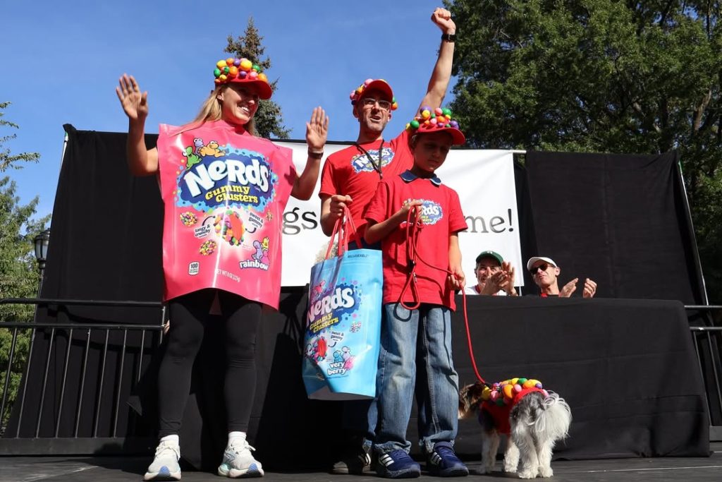 Ще одна учасниця, Рейчел МакКаслін із району Гованус, привела свою врятовану собаку Дафні — у костюмі цукерок Nerds Gummy Clusters.