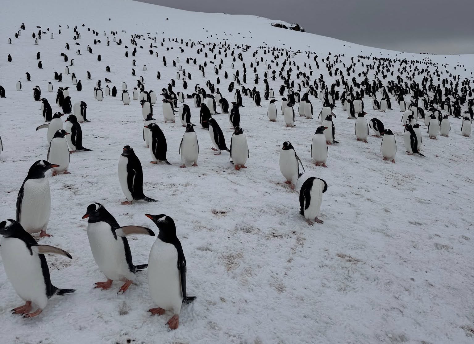 Зараз на Галіндезі — близько 7 тисяч пінгвінів. Вони активно гніздують і вже почали відкладати яйця. Це найважливіший період року, сповнений руху, турботи та змагання за їжу.