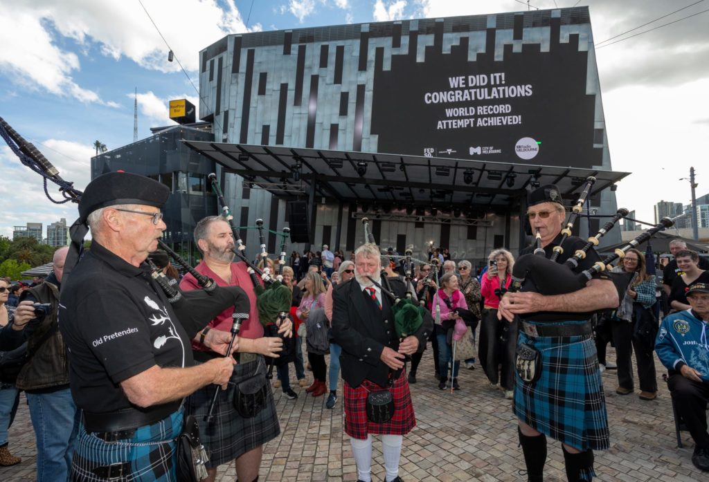 На центральній площі Мельбурна (Австралія) 374 волинкарі одночасно заграли культову пісню AC/DC It’s a Long Way to the Top (If You Wanna Rock’n’Roll) — і встановили світовий рекорд.