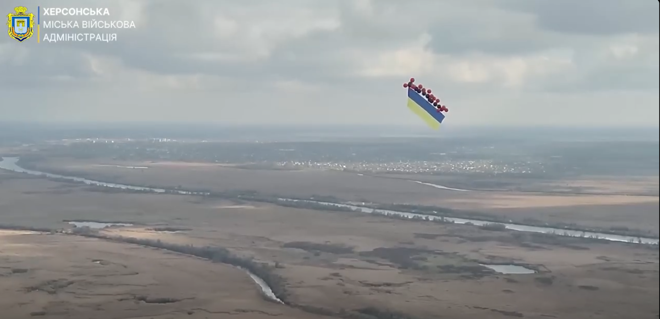 У післядень третьої річниці звільнення Херсона українці знову побачили символ своєї незламності — синьо-жовтий прапор. Запущений у небо він перетнув Дніпро й піднявся над тимчасово окупованим лівим берегом.