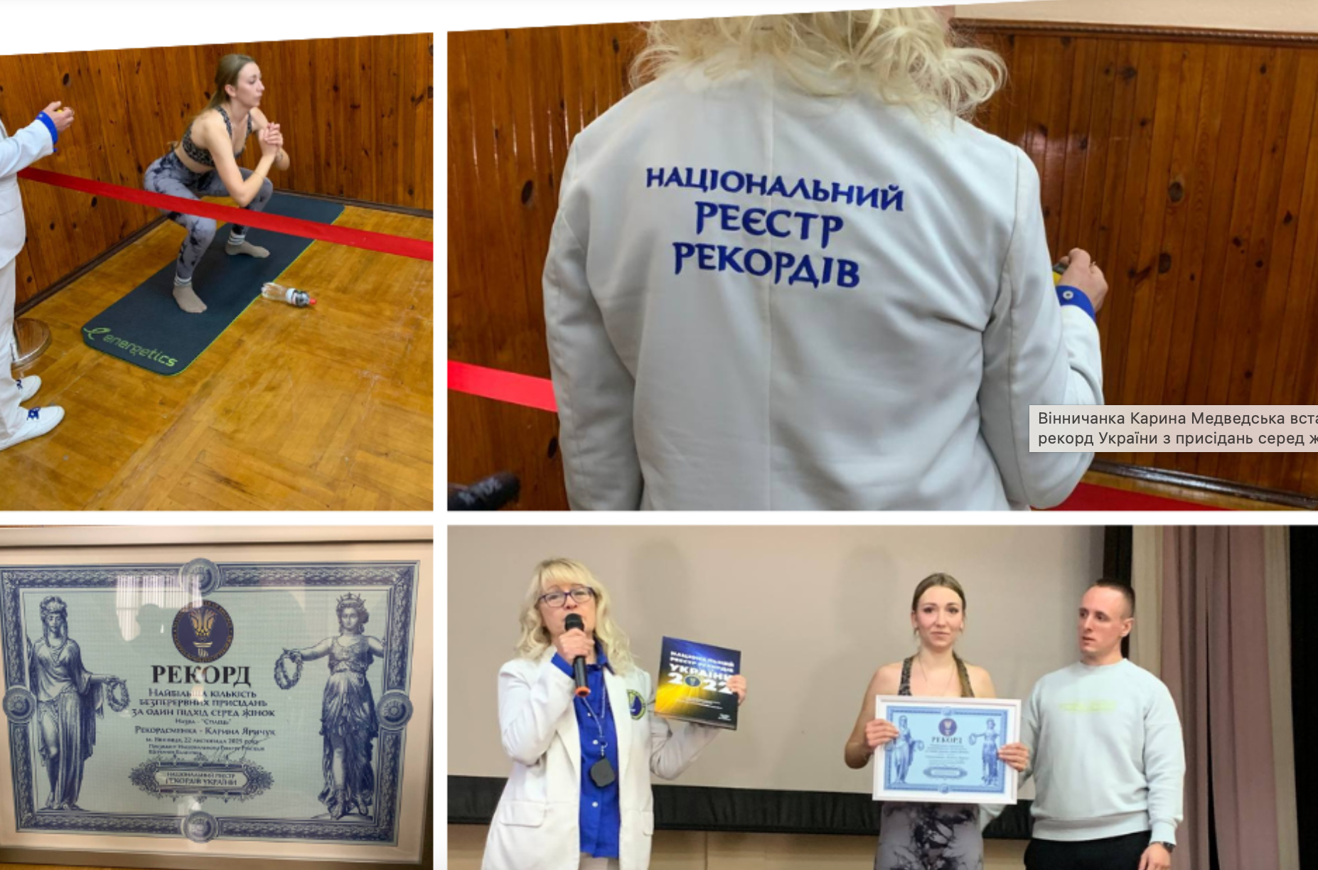 22 листопада у Вінниці спортсменка встановила досягнення в номінації “найбільша кількість присідань у безперервному режимі”. 1 година, 11 хвилин і 33 секунди — стільки тривала її боротьба, яку Карина присвятила пам’яті свого батька, Віталія Медведського, полеглого захисника України. Його стійкість і любов до Батьківщини стали для доньки компасом і внутрішньою опорою на шляху до рекорду.