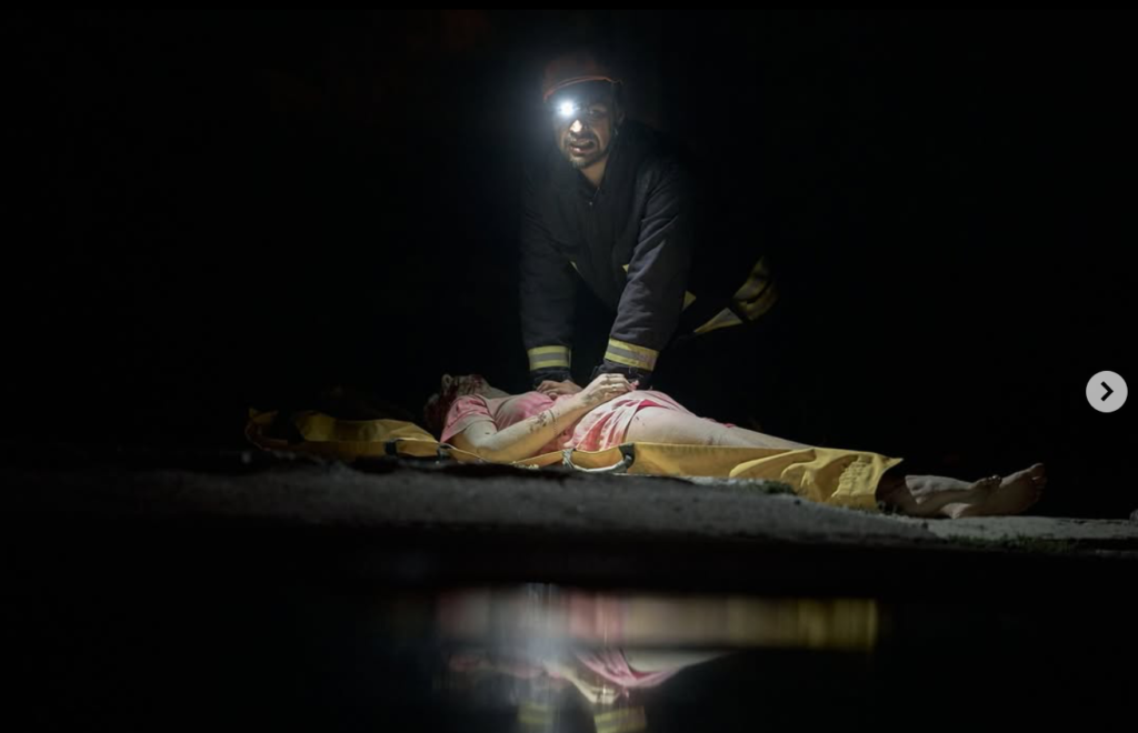 На фото, опублікованому TIME, зображені рятувальники, які надають допомогу постраждалій людині після ракетного удару по житловому будинку в Києві 28 серпня. Видання підписує кадр так: “Рятувальники опікуються постраждалою біля житлового будинку, у який влучила російська ракета в Києві 28 серпня. Ракета вдарила між третім і четвертим поверхами п’ятиповерхового будинку. За даними міністра внутрішніх справ Ігоря Клименка, загинуло щонайменше четверо людей”.