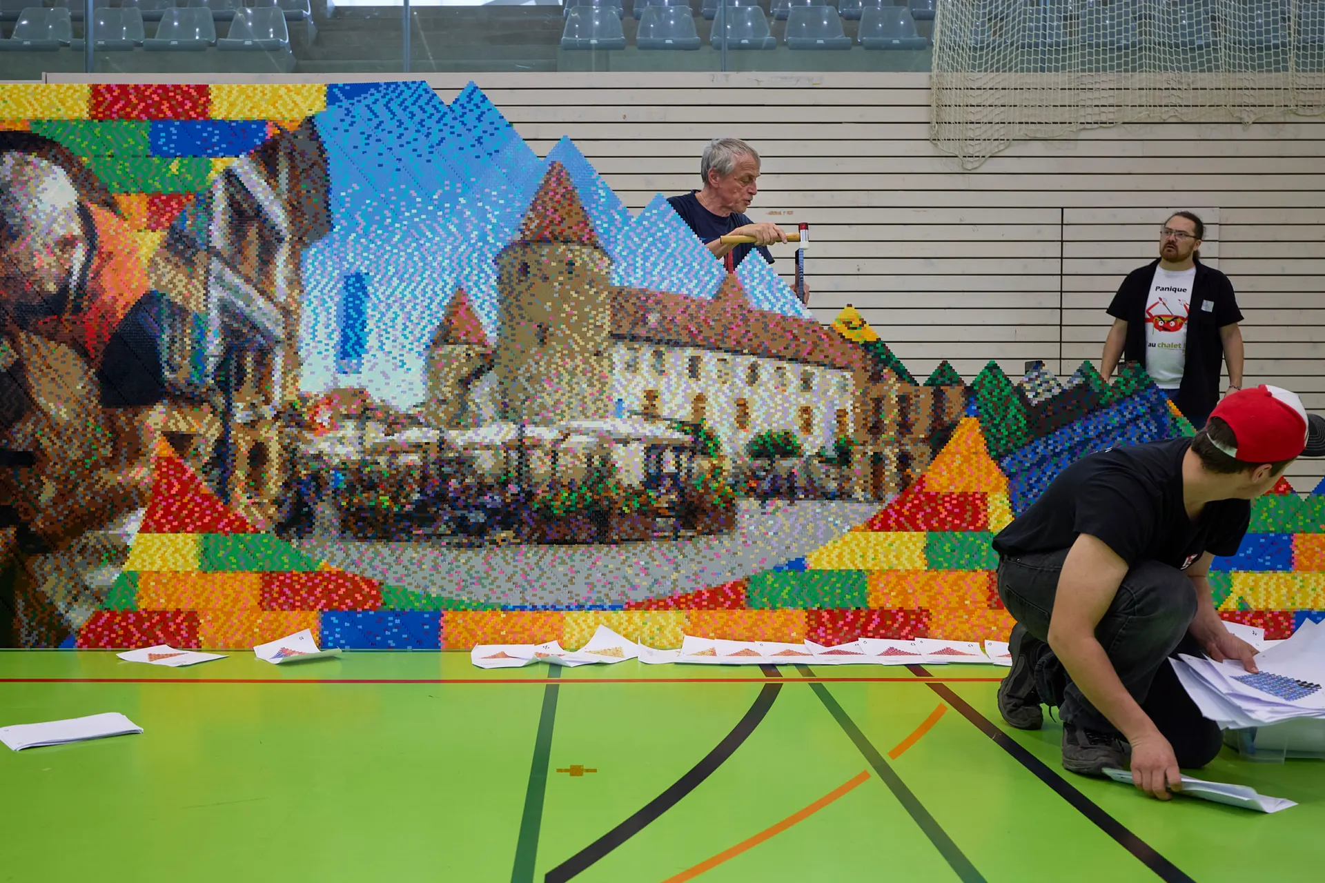 До створення фрески долучили всіх охочих: відвідувачі могли збирати “ромби” зі 100 деталей, а волонтери Brickmaster.ch (компанії з проведення Lego-подій, яка базується в Консізі) під’єднували ці елементи до загальної картини.
