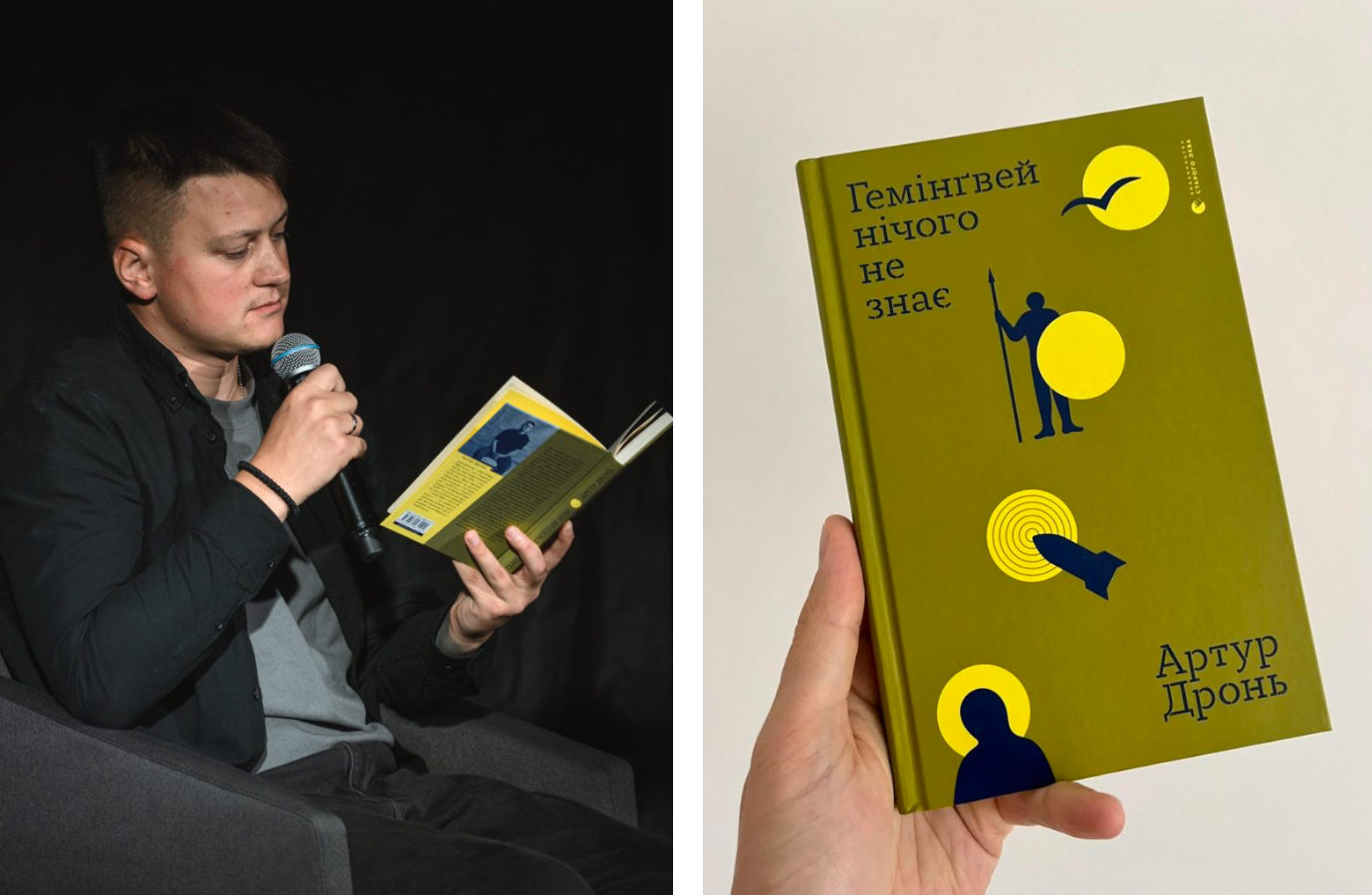 “Гемінґвей нічого не знає” — третя книжка двадцятичотирирічного Артура Дроня і перша прозова у його доробку. Її героями стали люди, яких автор зустрів на війні, а також близькі йому постаті — побратими, товариші, мешканці прифронтових територій.