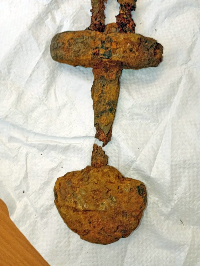 Археолог Сергій Діденко заявив, що є підстави припустити, що меч походить із поховання, ймовірно – з розореного кургану.