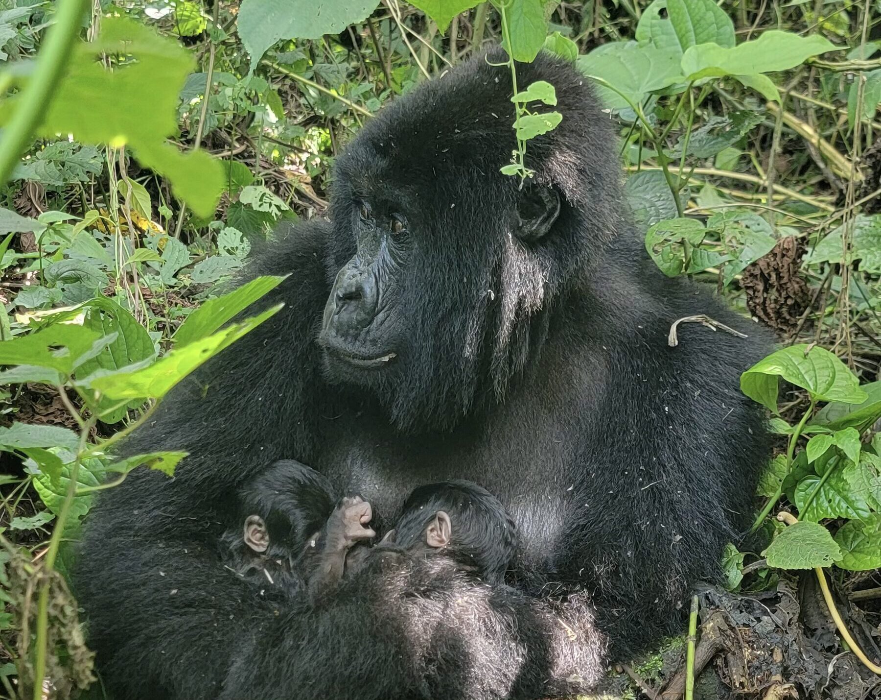 Народження близнюків у гірської горили — виняткова рідкість навіть за мирних умов, а в зоні затяжного конфлікту ця подія стає символом крихкої, але впертої надії на збереження життя посеред війни.