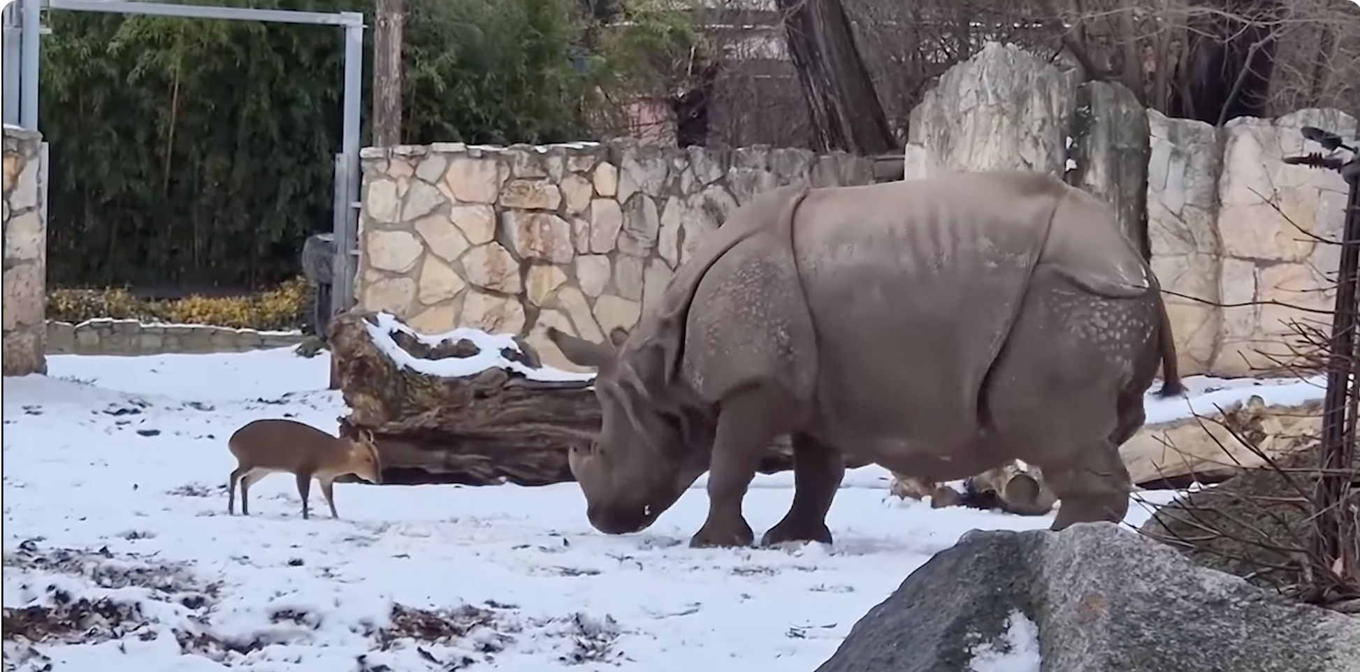 Як пояснили у Вроцлавському зоопарку, носороги та мунтжаки живуть разом там уже багато років. У них окремі “спальні”, але спільне “подвірʼя”, де вони регулярно їдять разом. “Як бачите, зазвичай між ними повна злагода”, — запевнили працівники.
