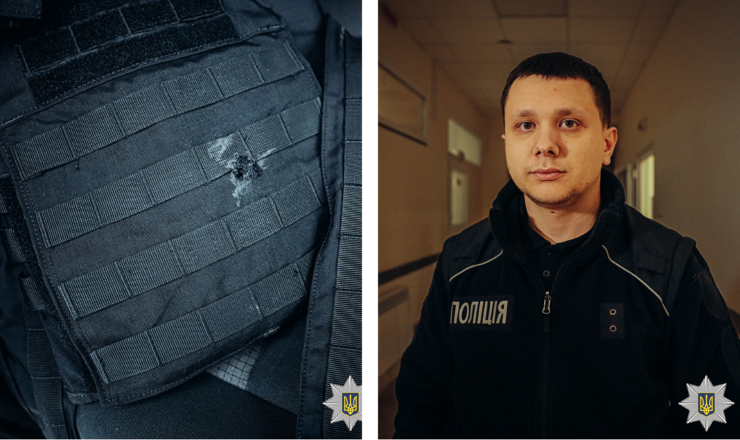 Поліцейські зреагували миттєво. Богдан кинувся до озброєного чоловіка, прикривши собою жінку з дитиною. У цей момент пролунала постріл. Дріб влучив у бронежилет поліцейського, що врятувало йому життя.