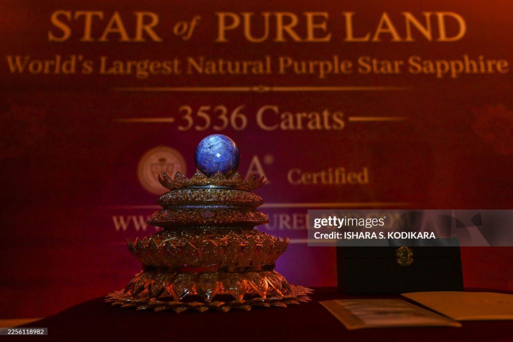 Рідкісний фіолетовий зоряний сапфір вагою 3563 карати (майже 713 грамів), виявили на Шрі-Ланці. Камінь вже отримав власну назву – Star of Pure Land (“Зірка Чистої землі”). Його вважають найбільшим природним зоряним сапфіром такого типу у світі і оцінюють у $300–400 млн.