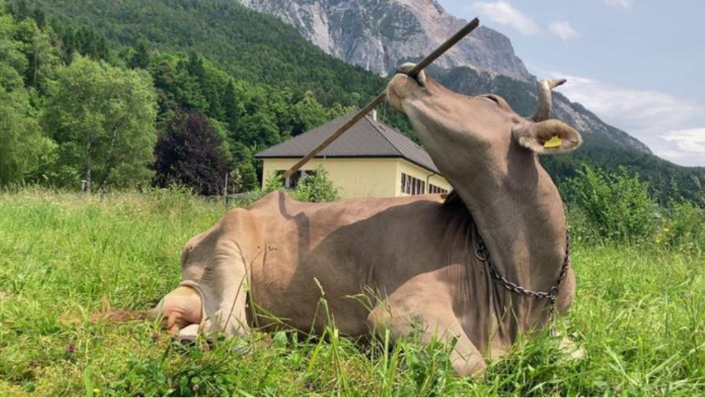 Як корова може почухати спину там, де не дістають копита? Виявляється — за допомогою інструмента. Відео з австрійської ферми змусило вчених переглянути уявлення про інтелект свійських тварин.