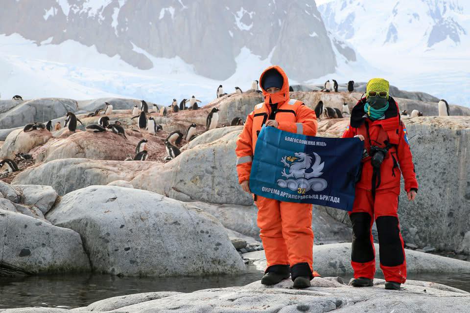 Екіпаж українського криголама “Ноосфера” розгорнув прапор 32-ї окремої артилерійської бригади морської піхоти ВМС ЗСУ в Антарктиді. Цей стяг пройшов великий шлях від Одеси, щоб зрештою замайоріти на українській станції “Академік Вернадський”.