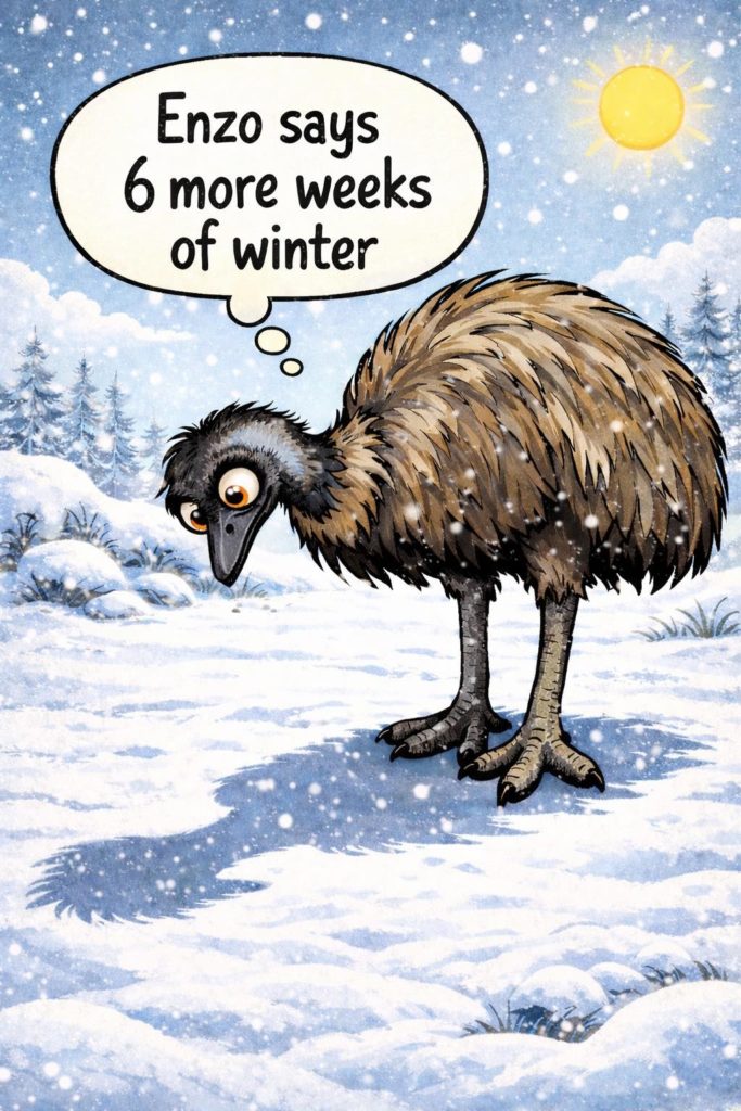 У канадському містечку Алмонте День бабака відзначили без бабака, проте з ему. Страус втекла з притулку, пробіглась вулицями й “офіційно оголосила” ще шість тижнів зими.