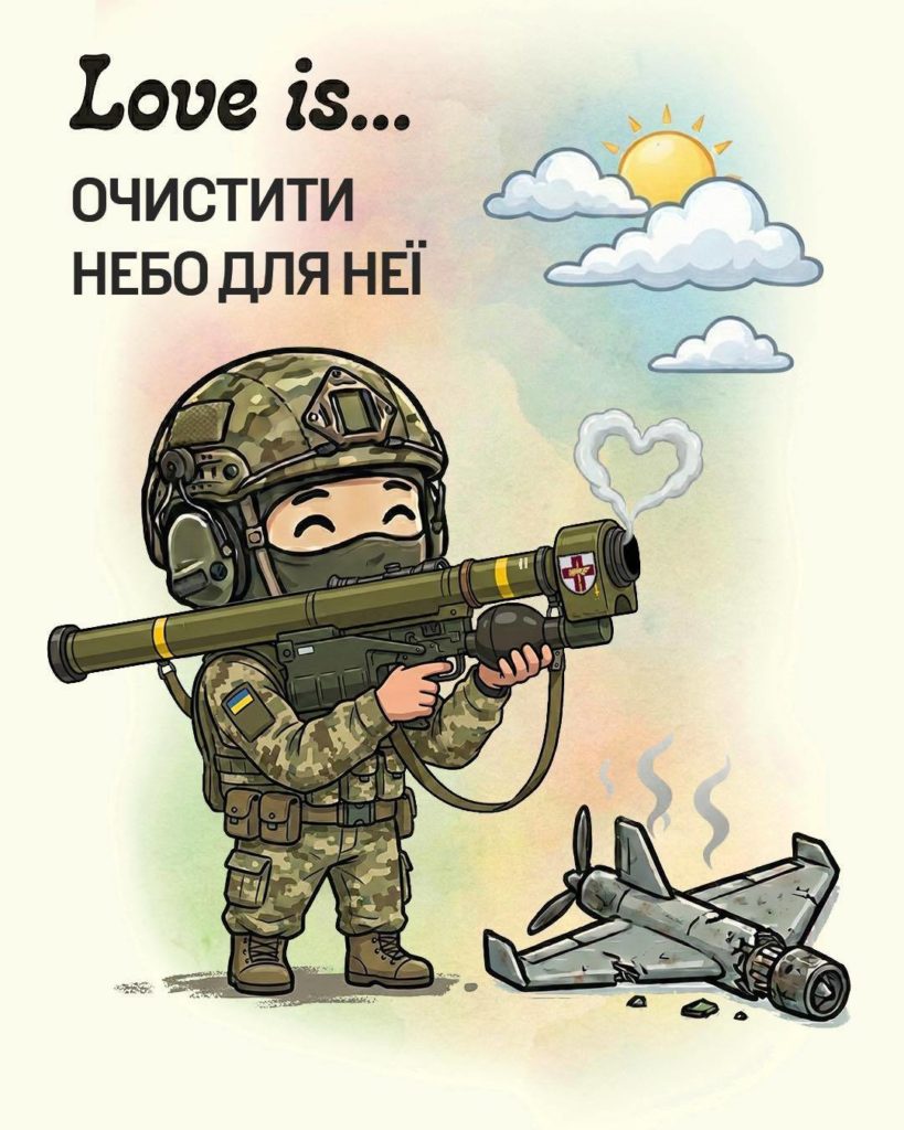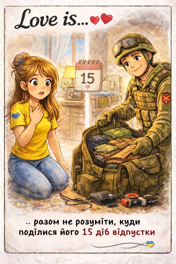 До Дня святого Валентина різні підрозділи Сил оборони підготували тематичні листівки, переосмисливши любов крізь призму війни. За основу військові взяли впізнавану стилістику наліпок “Love is…”, але наповнили її власними сенсами — про підтримку, побратимство і силу триматися разом навіть у найважчі часи.