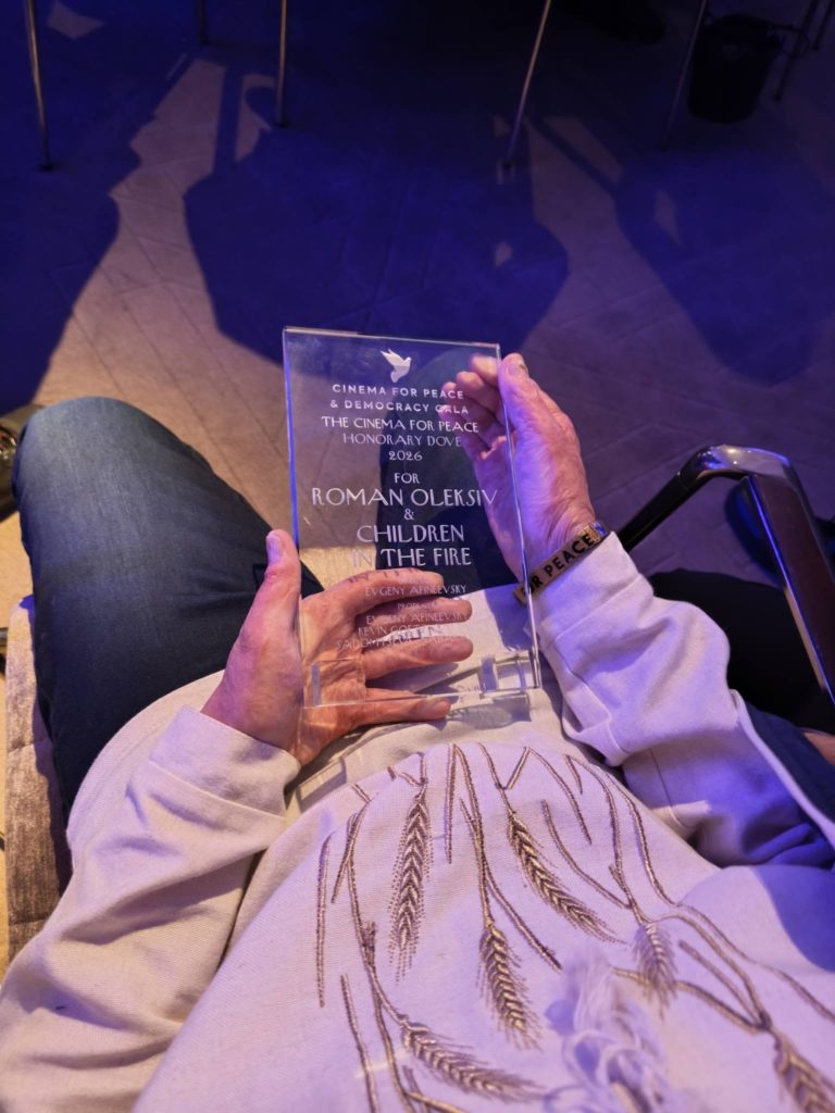 Українця Романа Олексіва відзначили почесною нагородою на щорічній церемонії Cinema for Peace, яка відбувається в межах Берлінського міжнародного кінофестивалю. Хлопчик став лауреатом відзнаки Cinema for Peace Honorary Dove 2026 за участь у документальному фільмі “Діти у вогні” (Children in the Fire) режисера Євген Афінеєвський.