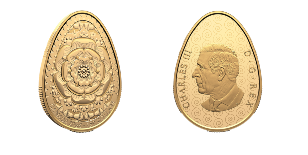 Монетний двір Канади презентував нову колекційну монету у формі писанки — традиційного символу української культури. Монета виготовлена з чистого золота 99,99% і присвячена весні, гармонії та відродженню. Вона важить понад 58 грамів, а її розміри становлять 45 на 33 мм.