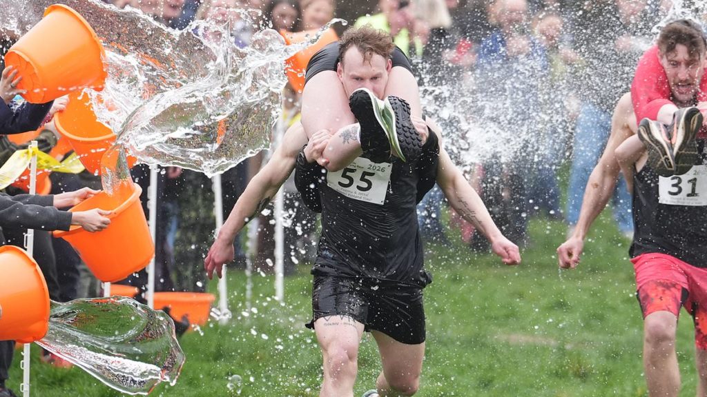 Британська версія змагань існує з 2008 року і щороку збирає десятки сміливців, готових пробігти дистанцію з партнером на плечах — заради перемоги, веселощів і, як у цьому році, бочки місцевого елю.