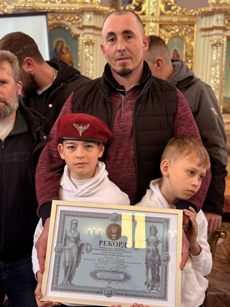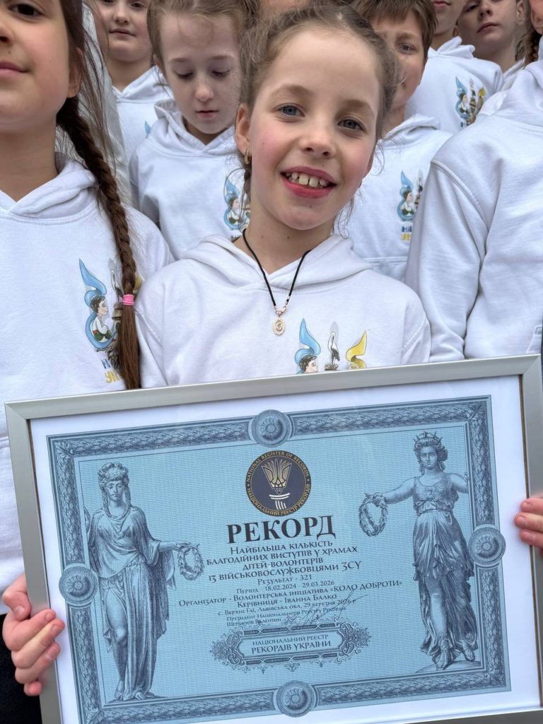 В Україні зафіксували зворушливий рекорд — “Найбільша кількість благодійних виступів дітей з військовослужбовцями ЗСУ у храмах”. Його встановили учасники проєкту “Волонтерики Коло Доброти” з Дрогобича на Львівщині.