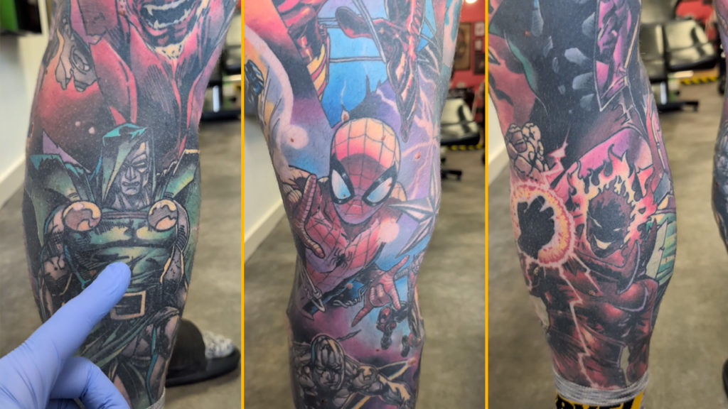 Британець Том Редфорд встановив світовий рекорд, покривши своє тіло татуюваннями з героями всесвіту Marvel. На його шкірі — вже 63 персонажі, і це найбільша кількість таких тату у світі.