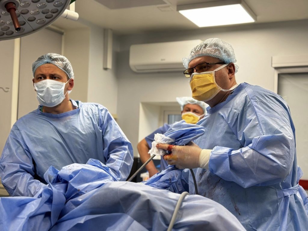 Пацієнта негайно взяли в операційну. Замість відкритого втручання з великим розрізом лікарі вирішили діяти малоінвазивно — через невеликі проколи.