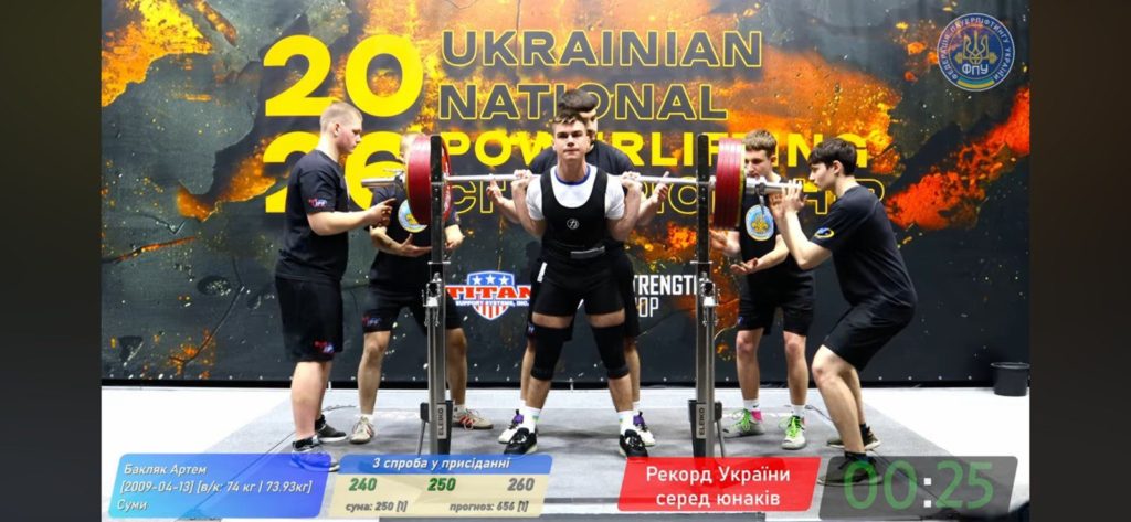 Найбільш видовищною стала станова тяга: Бакляк підкорив 262,5 кг, 275 кг і 285 кг, встановивши ще п’ять рекордів — три серед юнаків і два серед юніорів.
