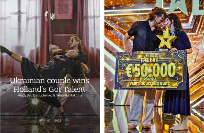 На шоу Holland’s Got Talent відбувся один із найемоційніших моментів сезону. Українські танцівники 28-річний Владислав Детюченко та 26-річна Вероніка Ракітіна, які були змушені виїхати з України через повномасштабну війну, виконали номер, що розповідає про їхню особисту історію втрати, розлуки та сили триматися разом.